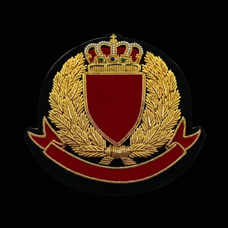 2025 Wholesale Custom Bullion Wire Badge Hand Made Large Design logo Embroidery Patches Made in Pakistan