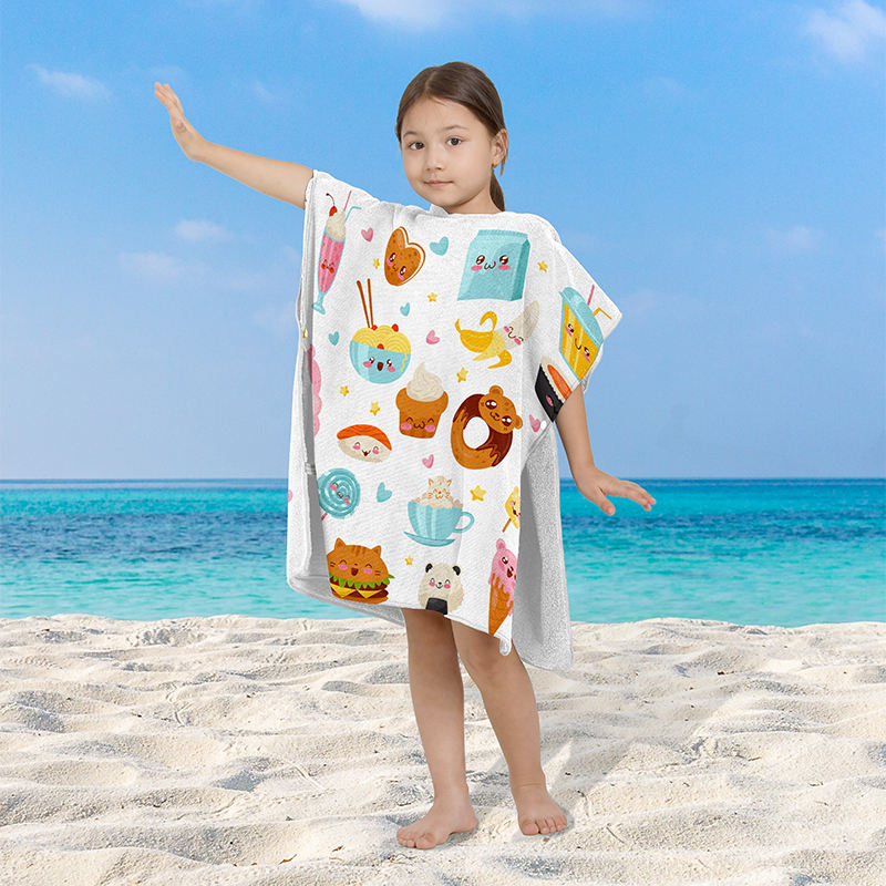 2025 Wholesale Custom Cute Ice Cream Cake Printed QUICK-DRY Wearable Poncho Kids Hooded Beach Towel With Button