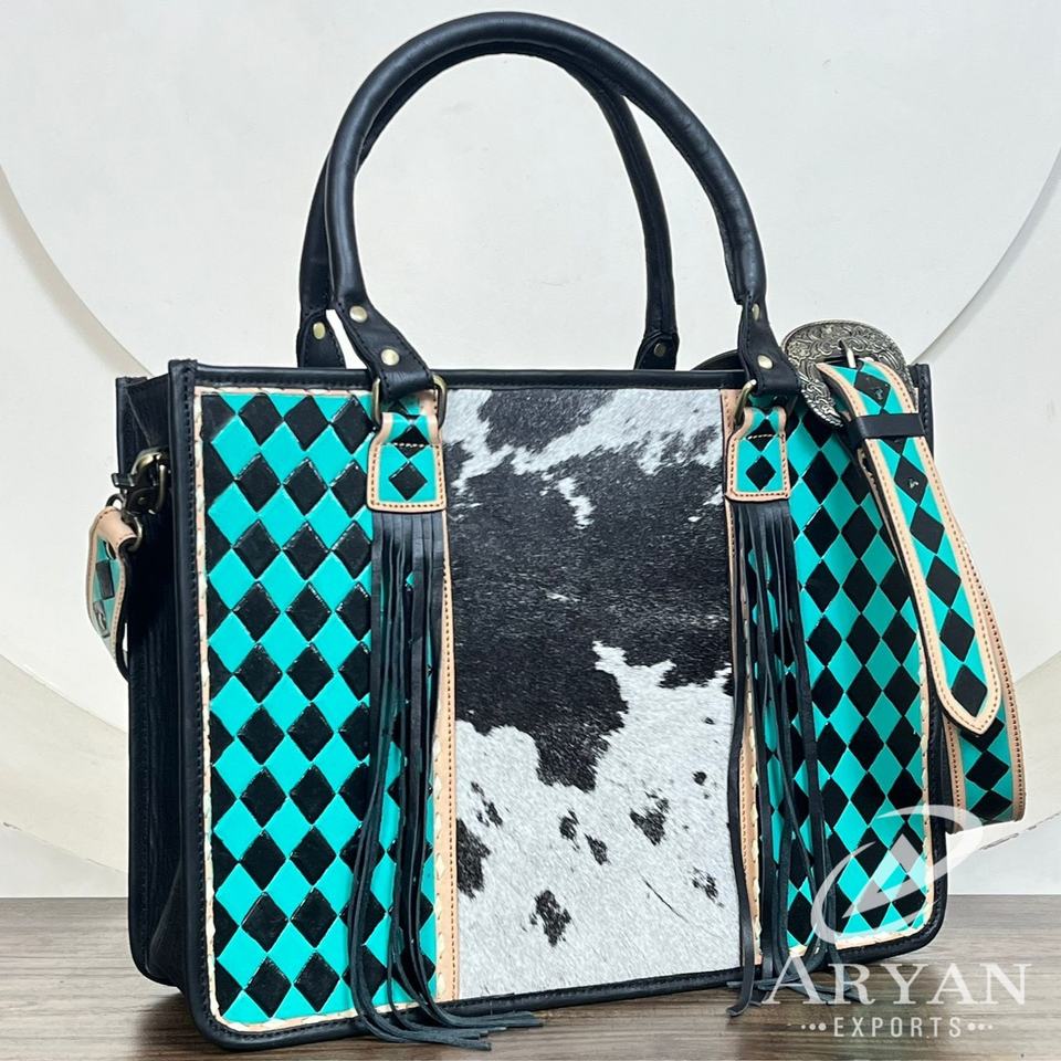 Product Name:Hand Tooled Checkered Leather Crossbody Tote Bags