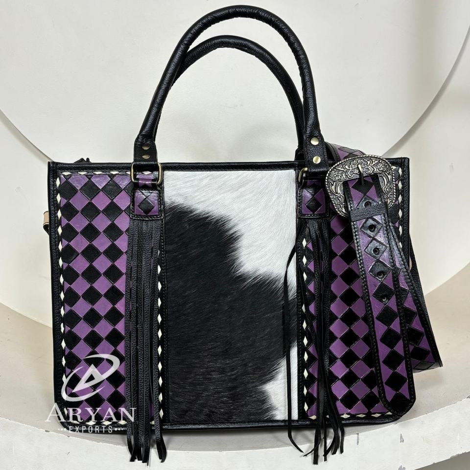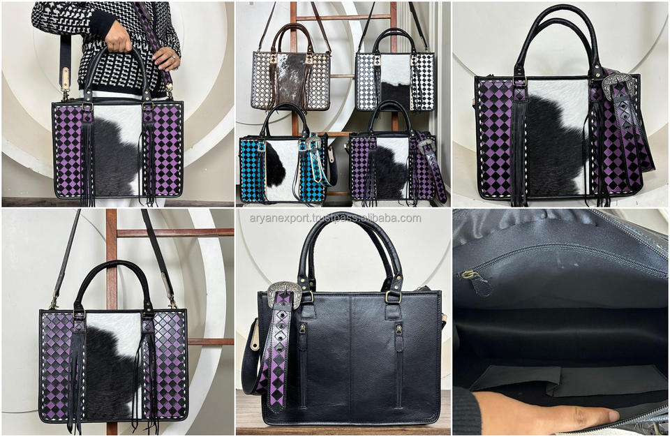 2025 Wholesale Custom High Quality Hand Tooled Cow Leather premium Tote Bag Checkered Pattern Western-style handbag for Women's