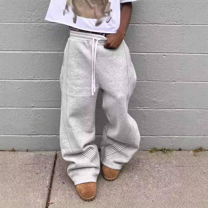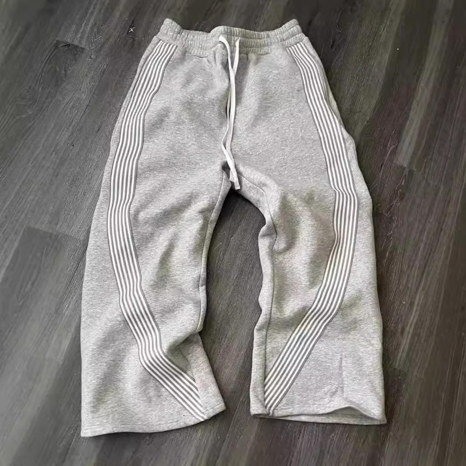 2025 Wholesale Custom Logo Streetwear High Cotton Oversize Baggy Jogging Wide Leg Stacked Side Striped High Quality Sweatpants
