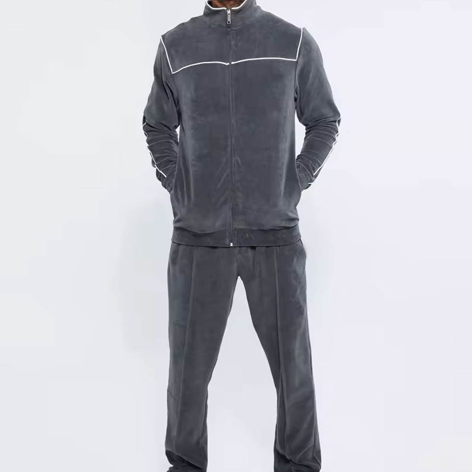 2025 Wholesale Custom Velour Velvet Skinny Tracksuit Men with Panels Style Plain Regular Fit 100% Cotton Winter Unisex Sweatsuit