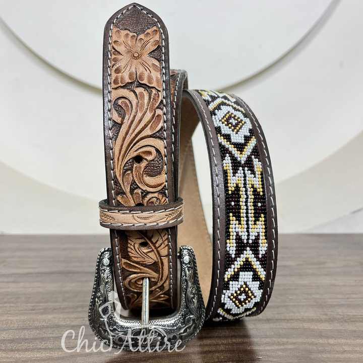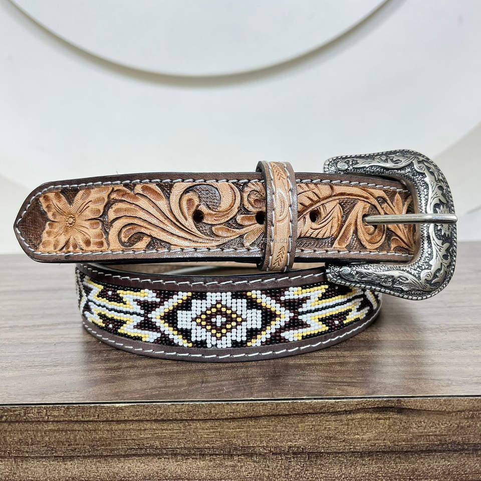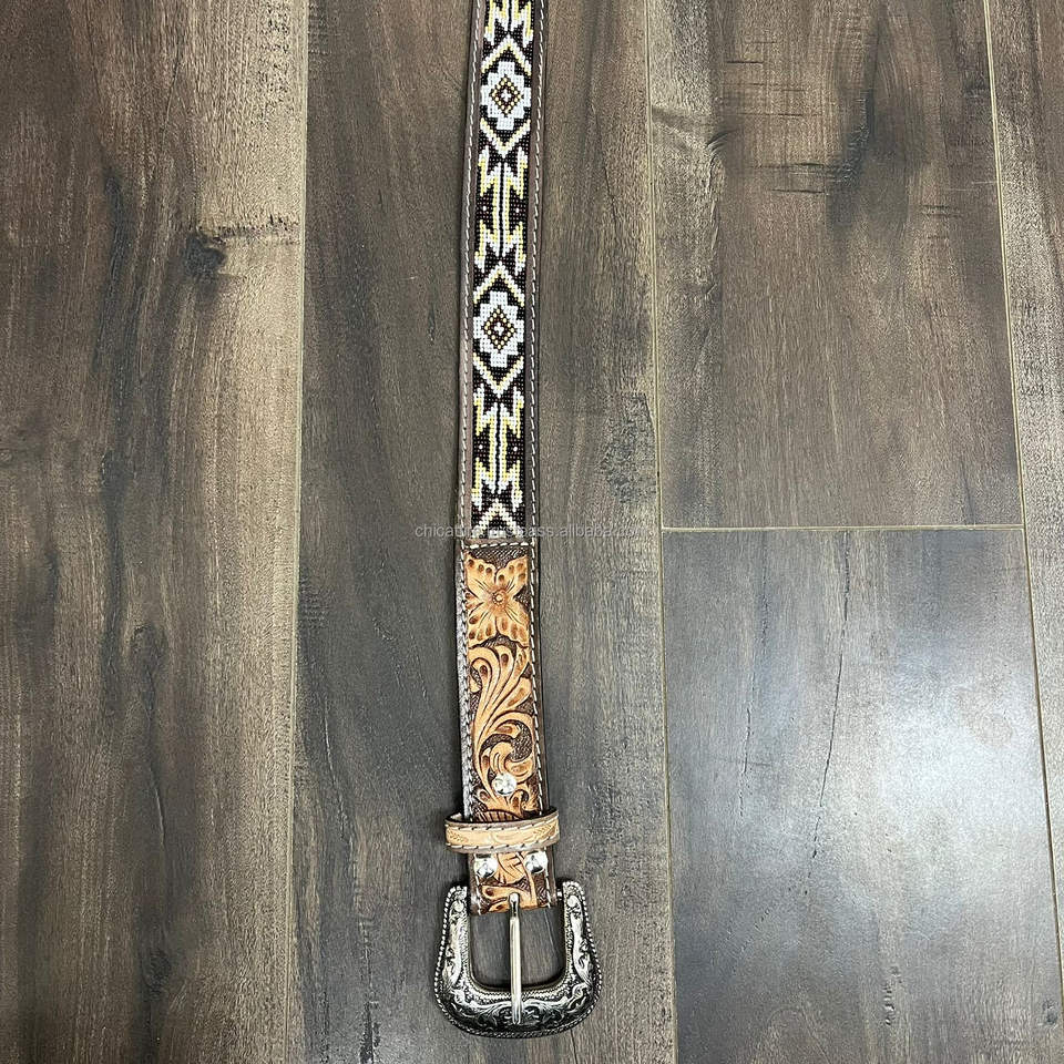 Product name:Hand Tooled Leather Beaded Pin Buckle Belt