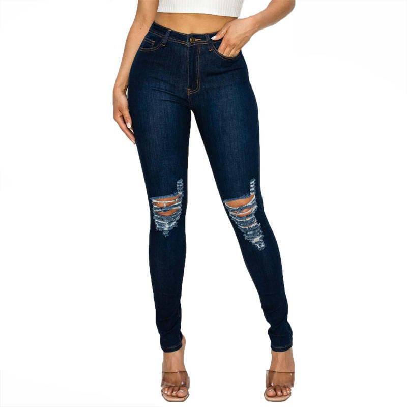2025 Wholesale High Quality Women's High Waisted-Rise Colored Stretch Skinny Destroyed Ripped Distressed Jeans Plus Size Solid