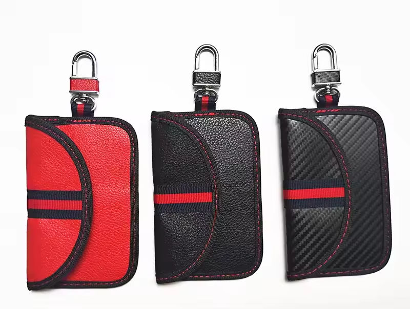 2025 Wholesale Key Fob Protector Holder Carbon Fiber Leather RFID Car Key Signal Blocker Case Car Theft Pouch Faraday Bag