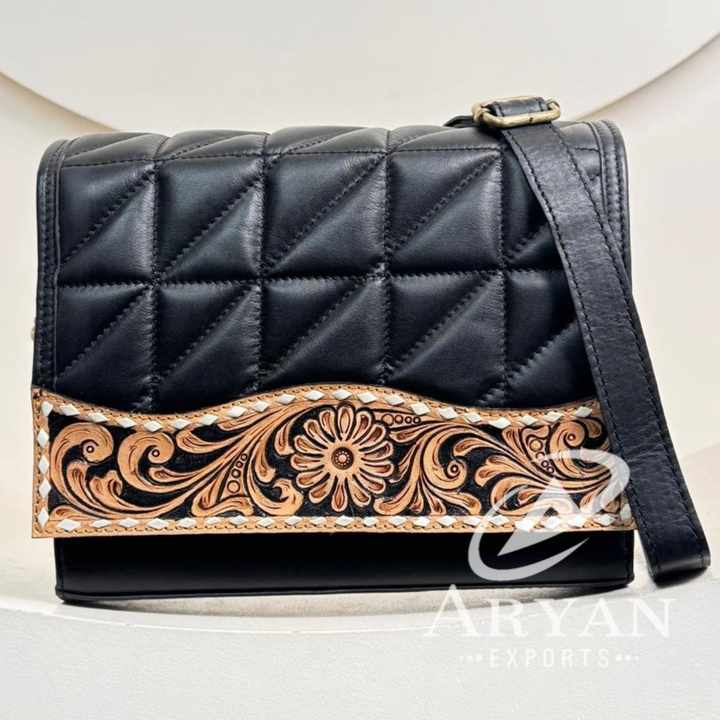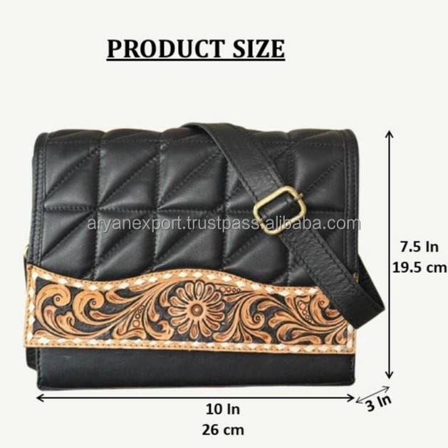 Product name:Hand Tooled Quilted Leather Women's Crossbody Bag
