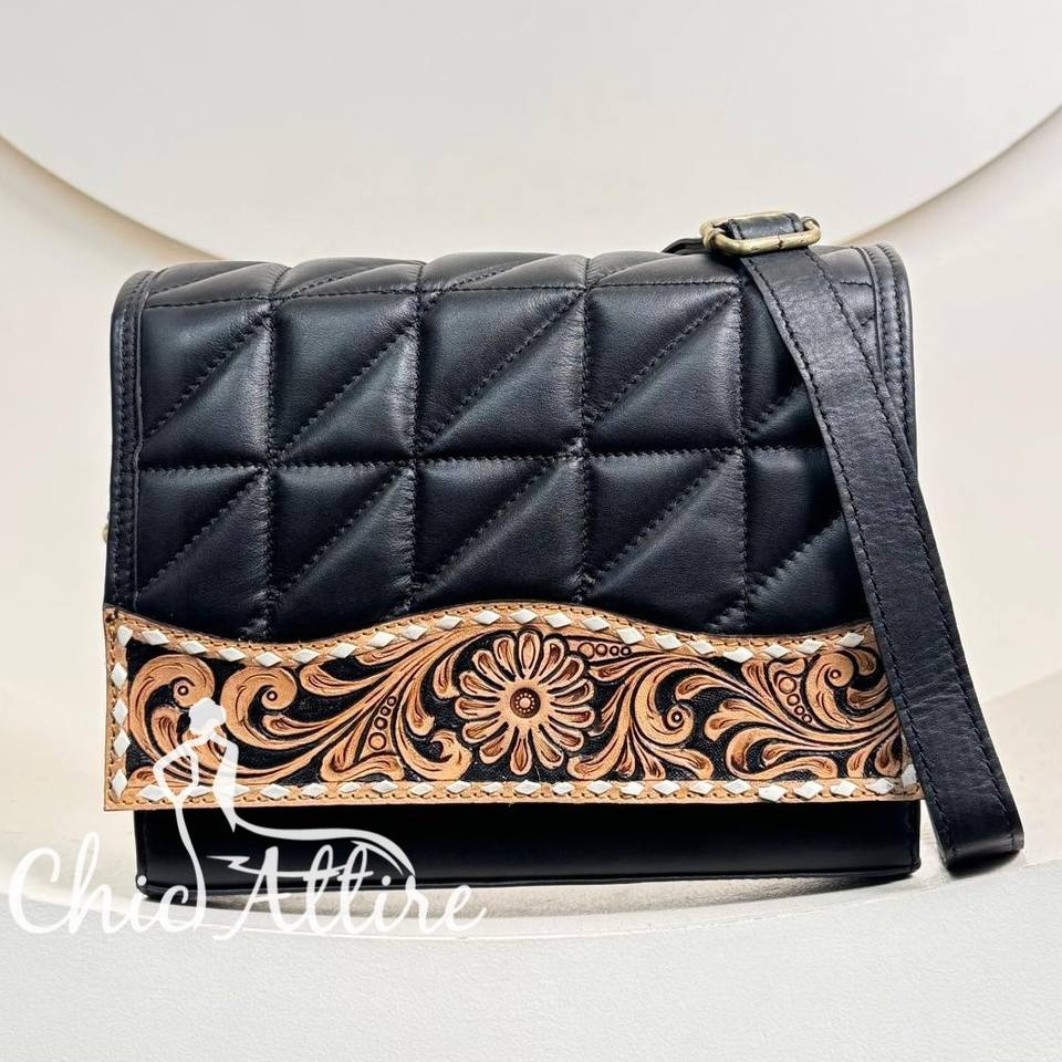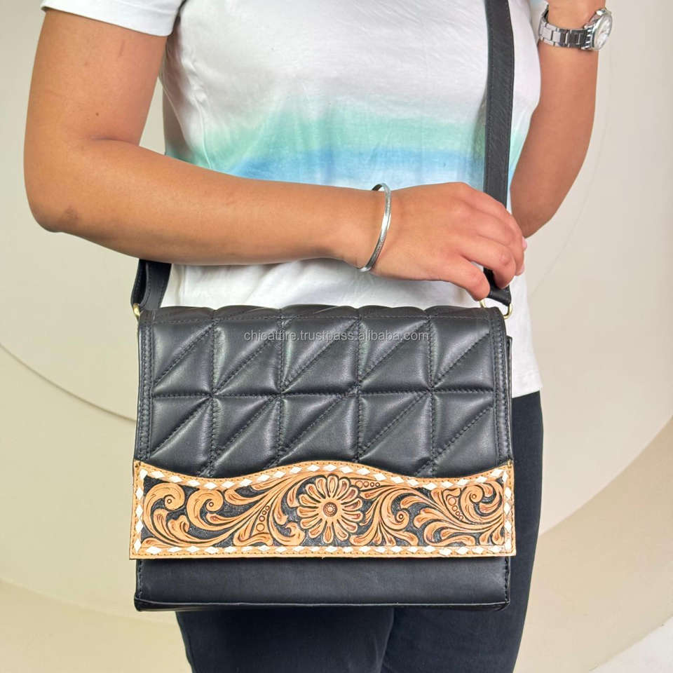 Product name:Hand Tooled Quilted Leather Women's Crossbody Bag