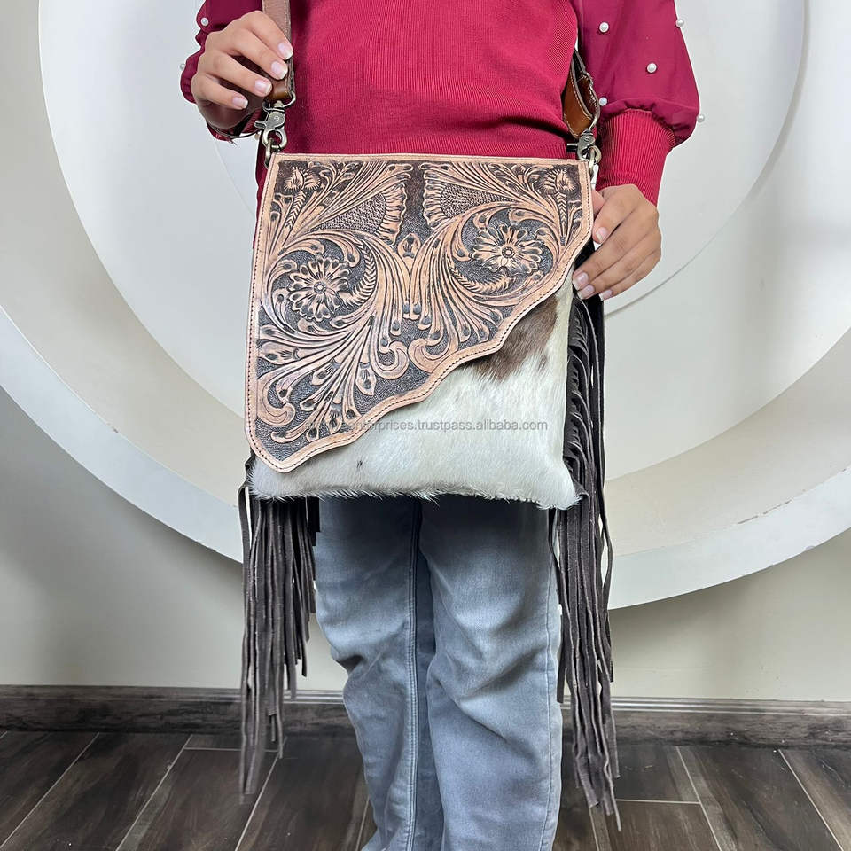 Product name:Hand Tooled Cowhide Leather Fringe Crossbody Bag