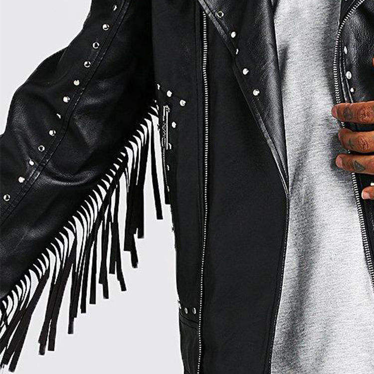 2025 Wholesale Mens Black Rock Punk Studded Biker Leather Jacket Stunning Tribal Gothic Rivet Biker Leather Jacket with Fringe