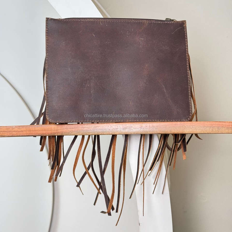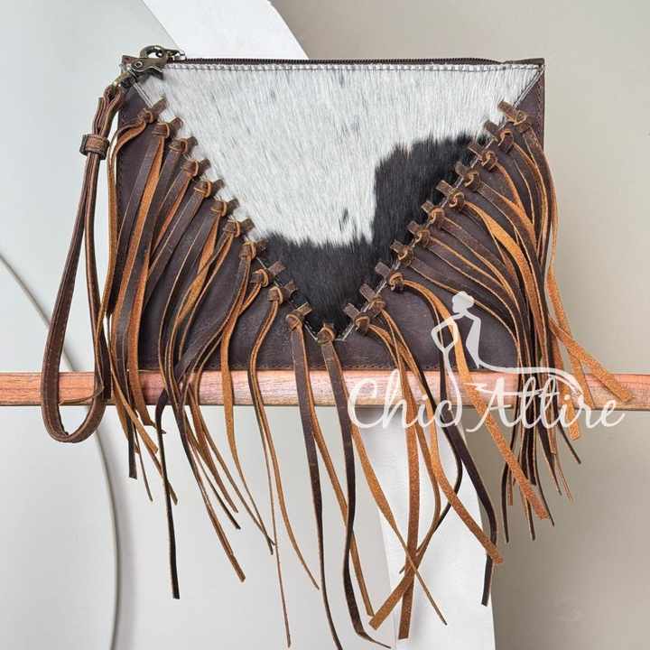 Product name:Cowhide Leather Fringe Wristlet Clutch Purse for Women