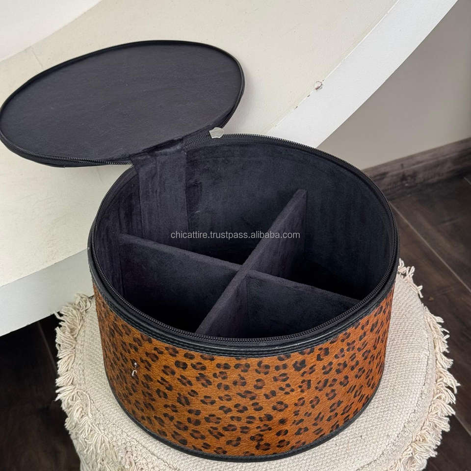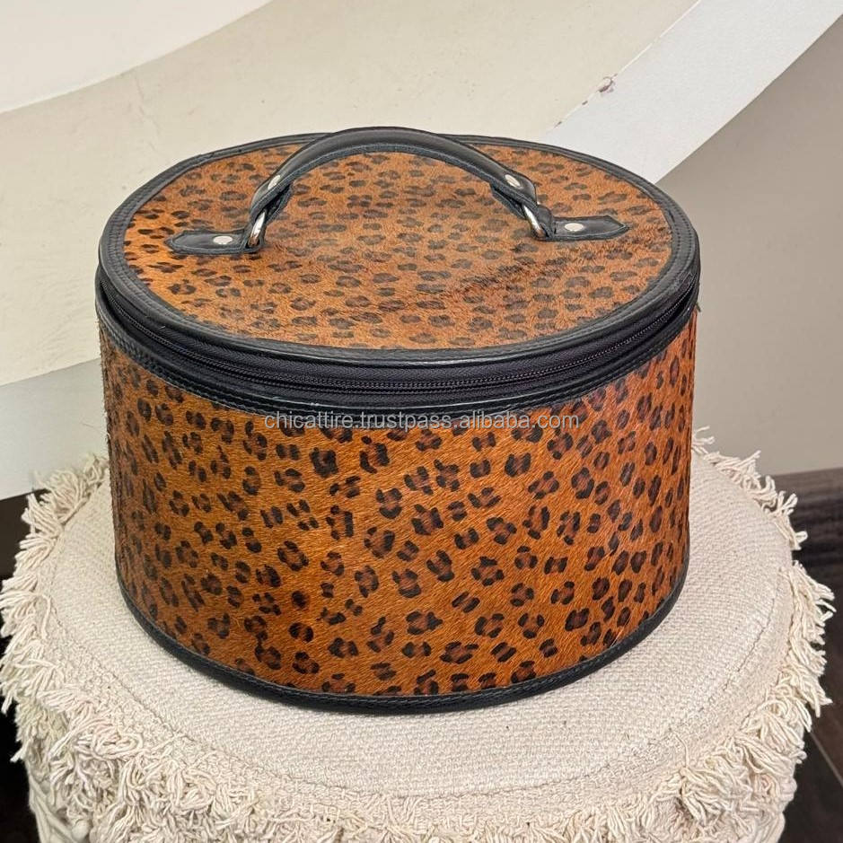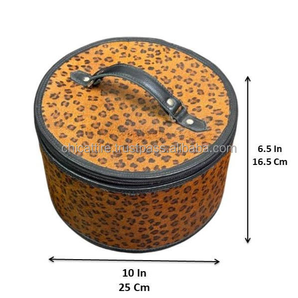 Product name:Cowhide Leather leopard print Round Jewelry Case