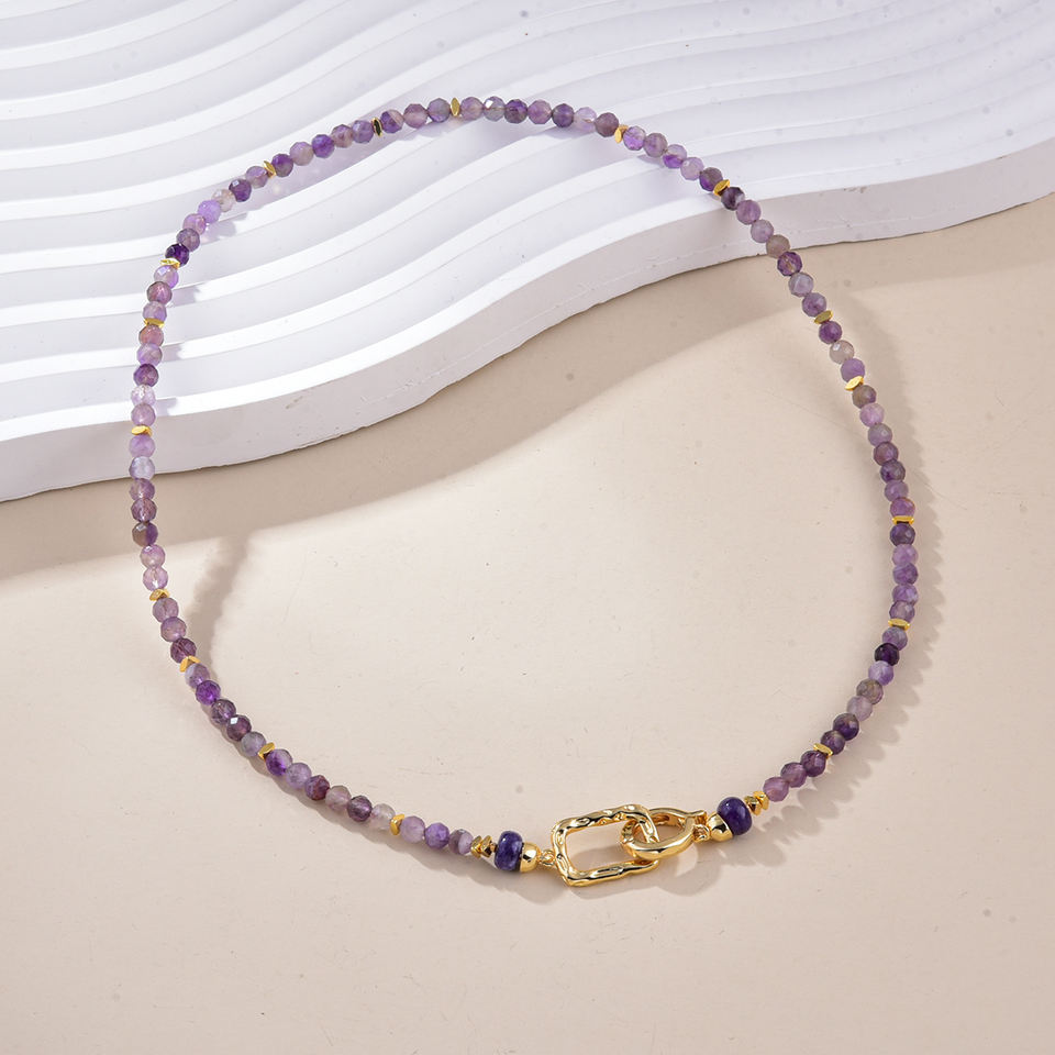 2025 Wholesale New Arrival Hand Made Natural Faceted Amethyst Stone Beaded Delicate Stone Beads Necklace for Women