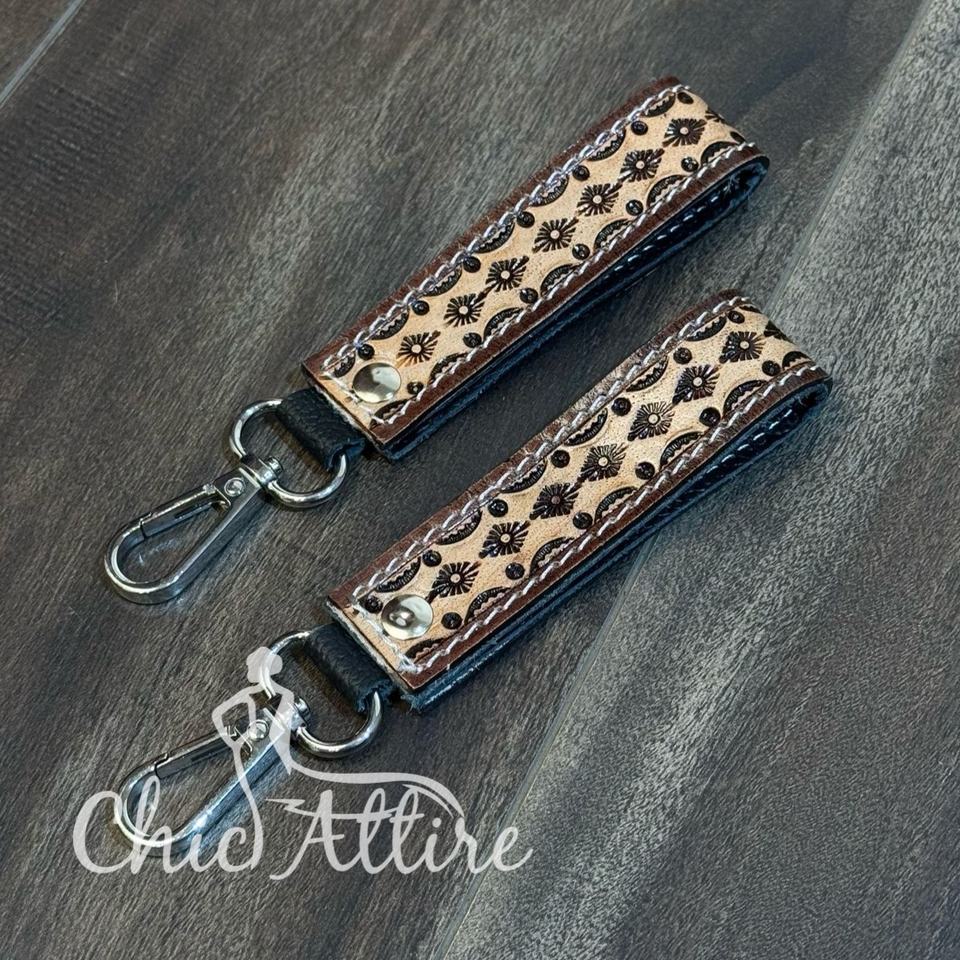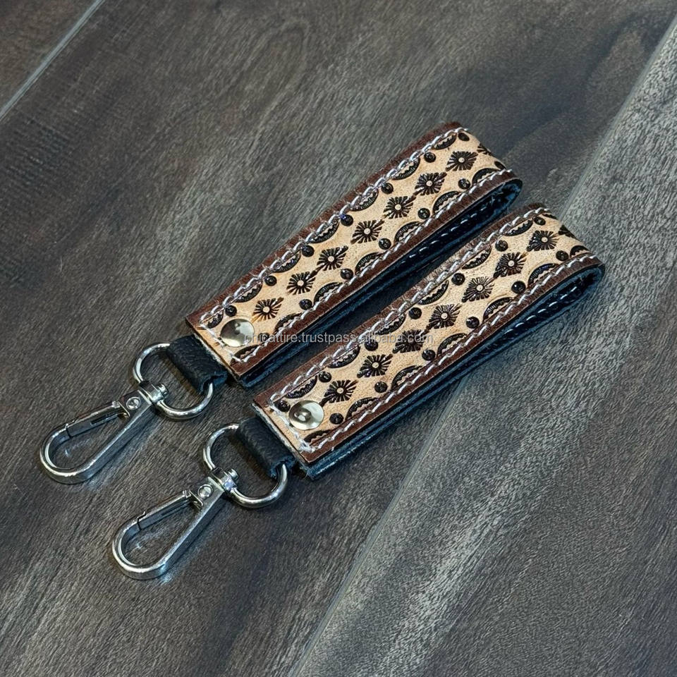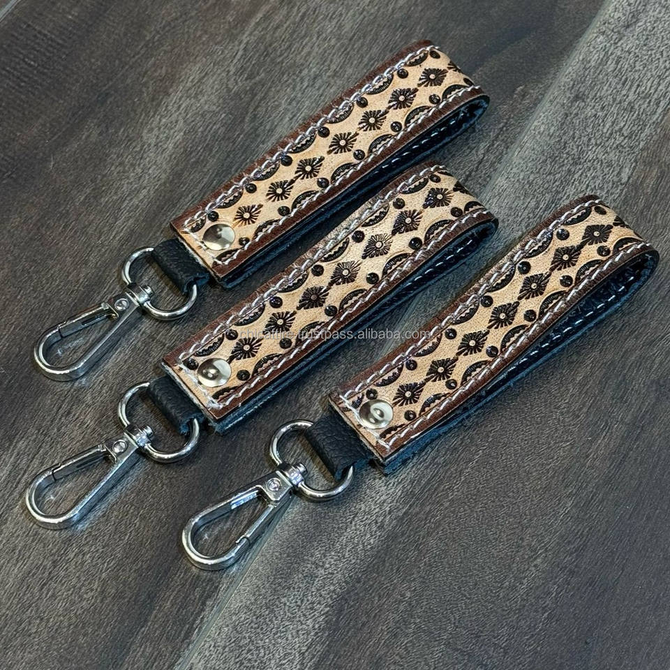 2025 Wholesale New Arrival Hand Tooled Leather Wrist Keychain Genuine Cowhide Leather Cowgirl Key Clip Accessories Cute Key Fob