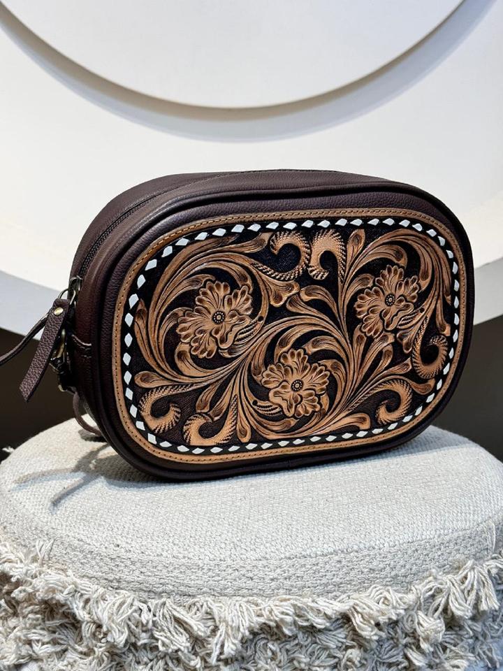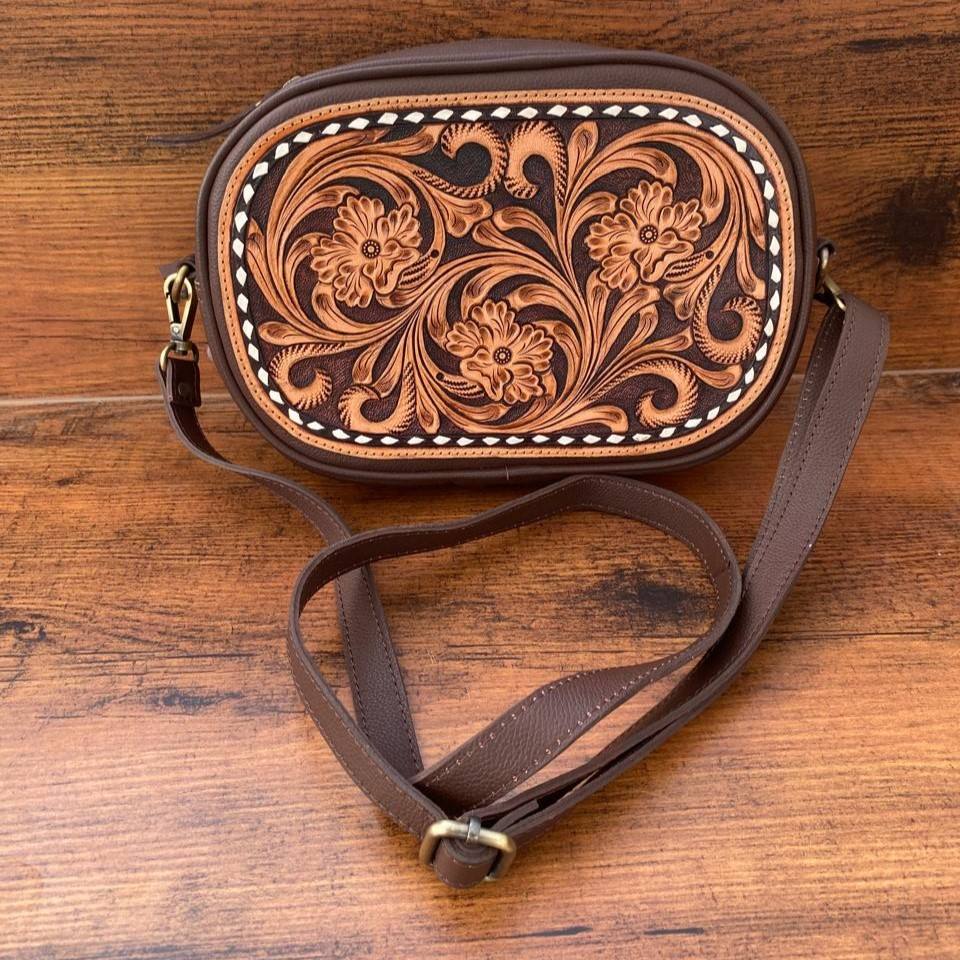 Product name:Hand Tooled Leather Crossbody Bag