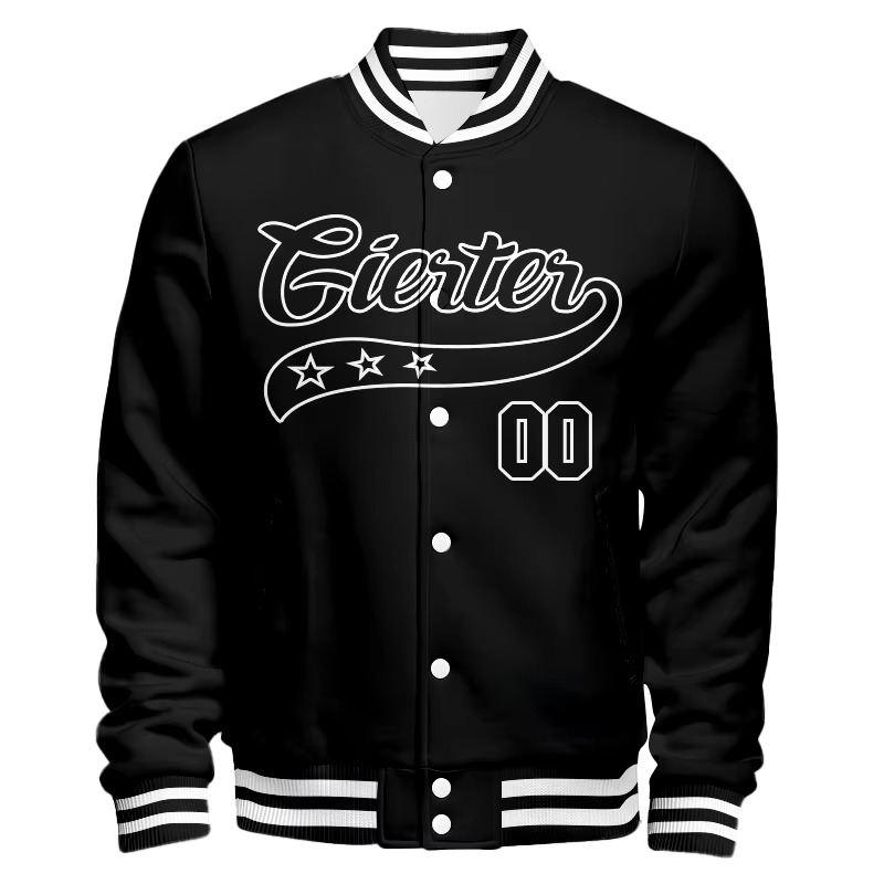 2025 Wholesale Plain Baseball Jackets Button up Custom logo Printed College Black Men's Jackets Varsity Jacket