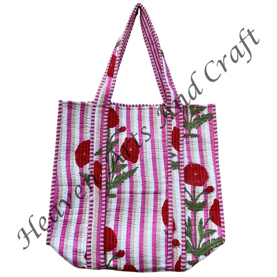 2025 Wholesale Premium Quality Indian Hand Block Print Cotton Quilted Tote Bag Large Shoulder Bag Perfect Gift Women's Travel