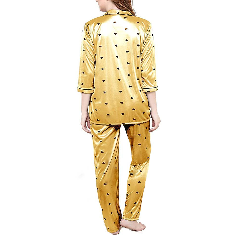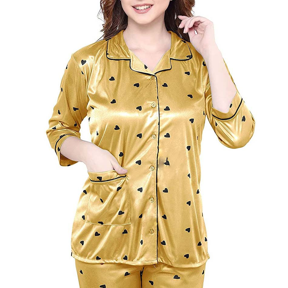 2025 Winter Collection Women's Short Sleeve Satin Pajamas Soft Sleepwear Button Closure Yellow Blue Solid Pattern Wholesale