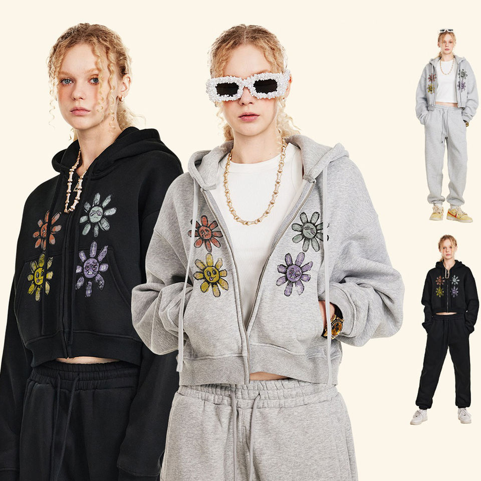 2025 Winter Europe and America Y2K Custom Print Hoodie Heavyweight Cotton Women's Universal Cropped Zip up Hoodies
