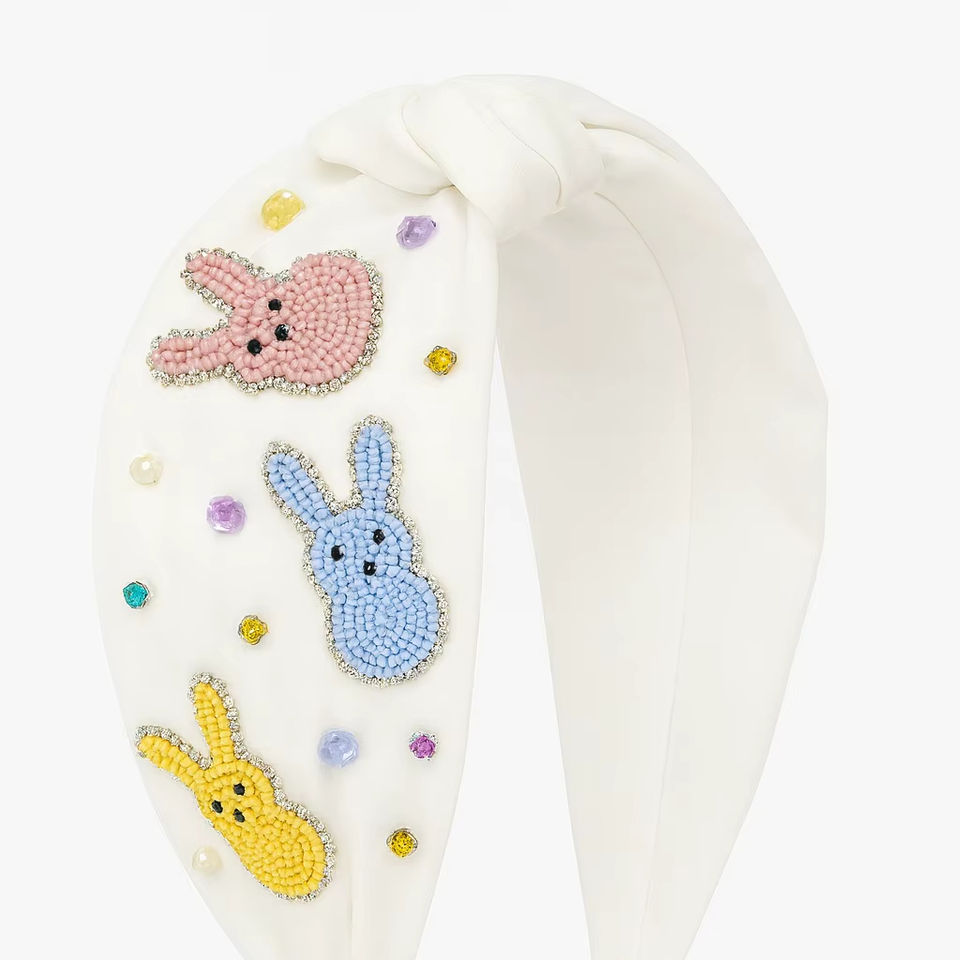 2025 Women Cute White Beaded Bunny Headband Hand-Beaded Hair Accessory with Crystal Embellishments Fashionable for Women Girls