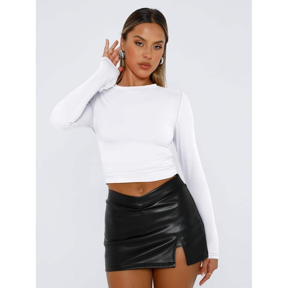 2025 Women's 2025 Long Sleeve Crop Tops Basic Slim Fit Y2K Outgoing Tops with Fall Fashion Yoga Top