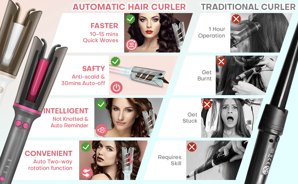 2025 Women's Automatic Curler Strap Black Gold Wavy Hair Fast Heating LED Stainless Steel Laser Printed Home Use