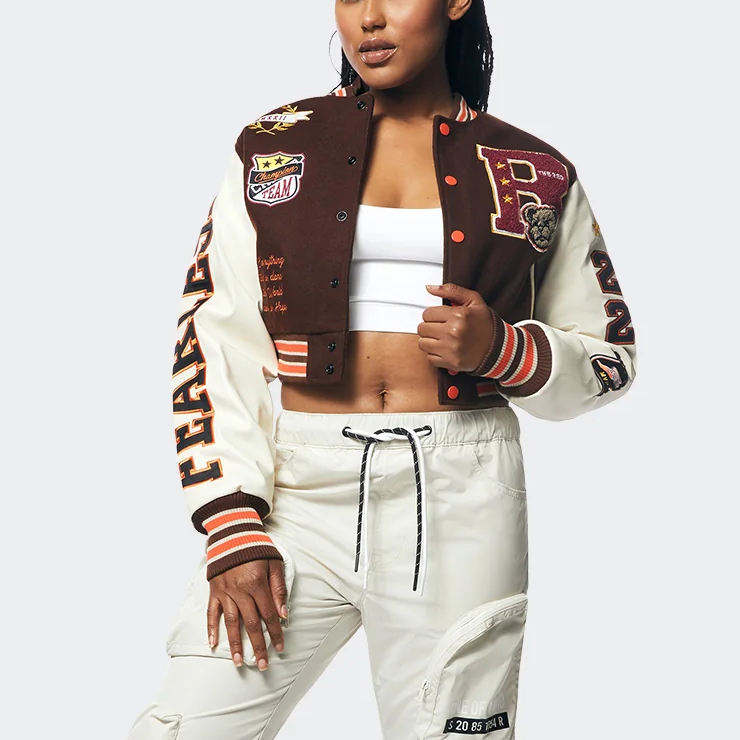 2025 Women's Baseball Quilted Letterman Coat Chic Leather Sleeves Solid Pattern Embroidered Varsity Jacket for Winter Cotton