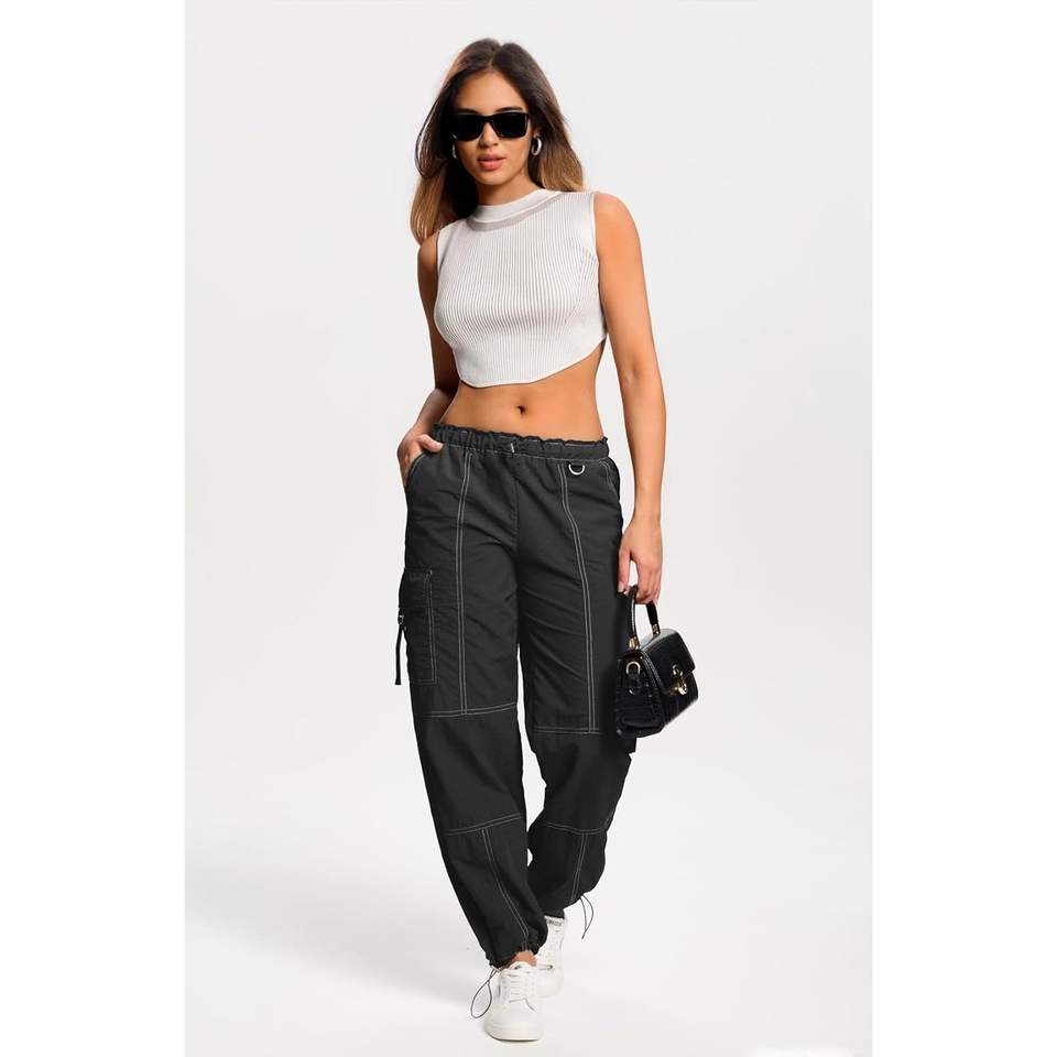 2025 Women's Cargo Pants Stitch Parachute Rave Y2K Festival Outfits for Hiking Outdoor Pants