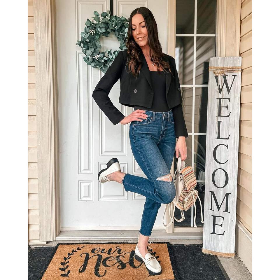 2025 Women's Cropped Blazers Button Open Front Long Sleeve Suit Jacket Trendy Oversized for Business Casual Work Office