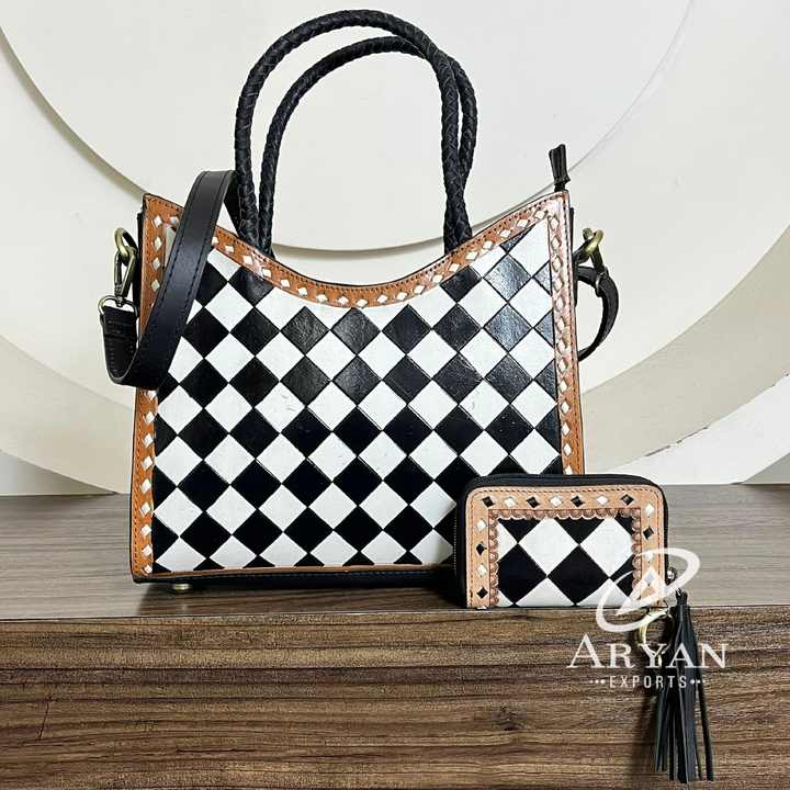 Product name:Genuine Leather Checkered 2-piece Combo Set