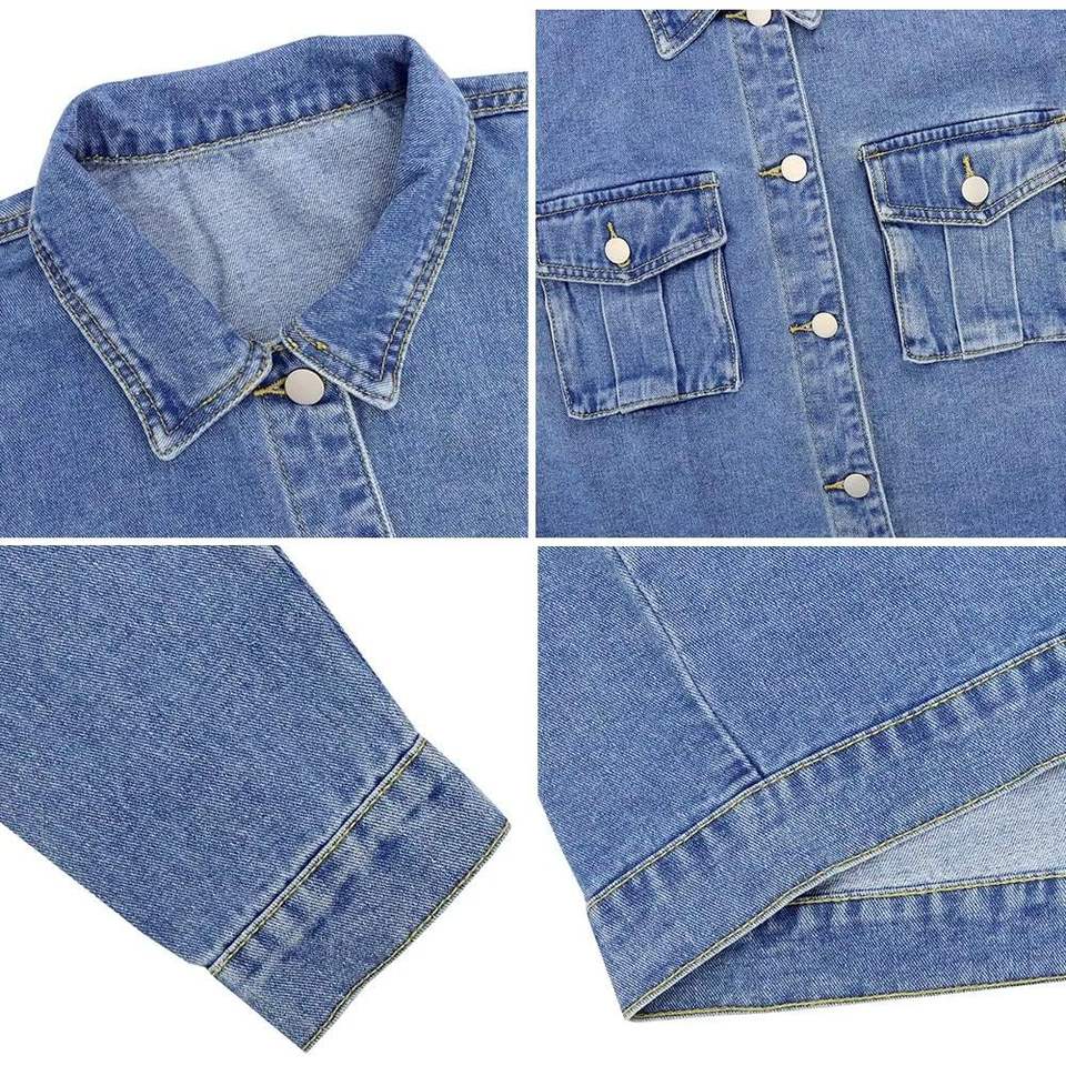 2025 Women's Gothic Casual Cropped Denim Jacket with Leopard Print Button Frayed Washed Look Belt Decoration Pockets for Autumn