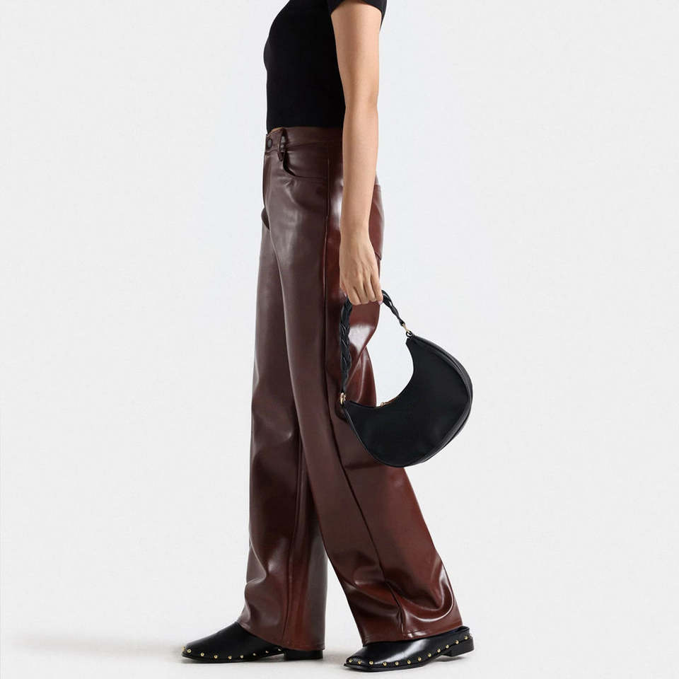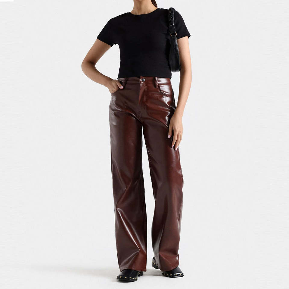 2025 Women's High-Waist Leather Streetwear Pants Bow Decoration Eco-Friendly Windproof Breathable Design for Winter Good Quality