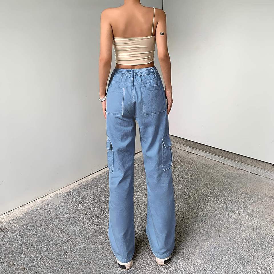 2025 Women's High Waist Straight Leg Y2K Streetwear Baggy Boyfriend Jeans Pencil Pants Style with Breathable Pocket