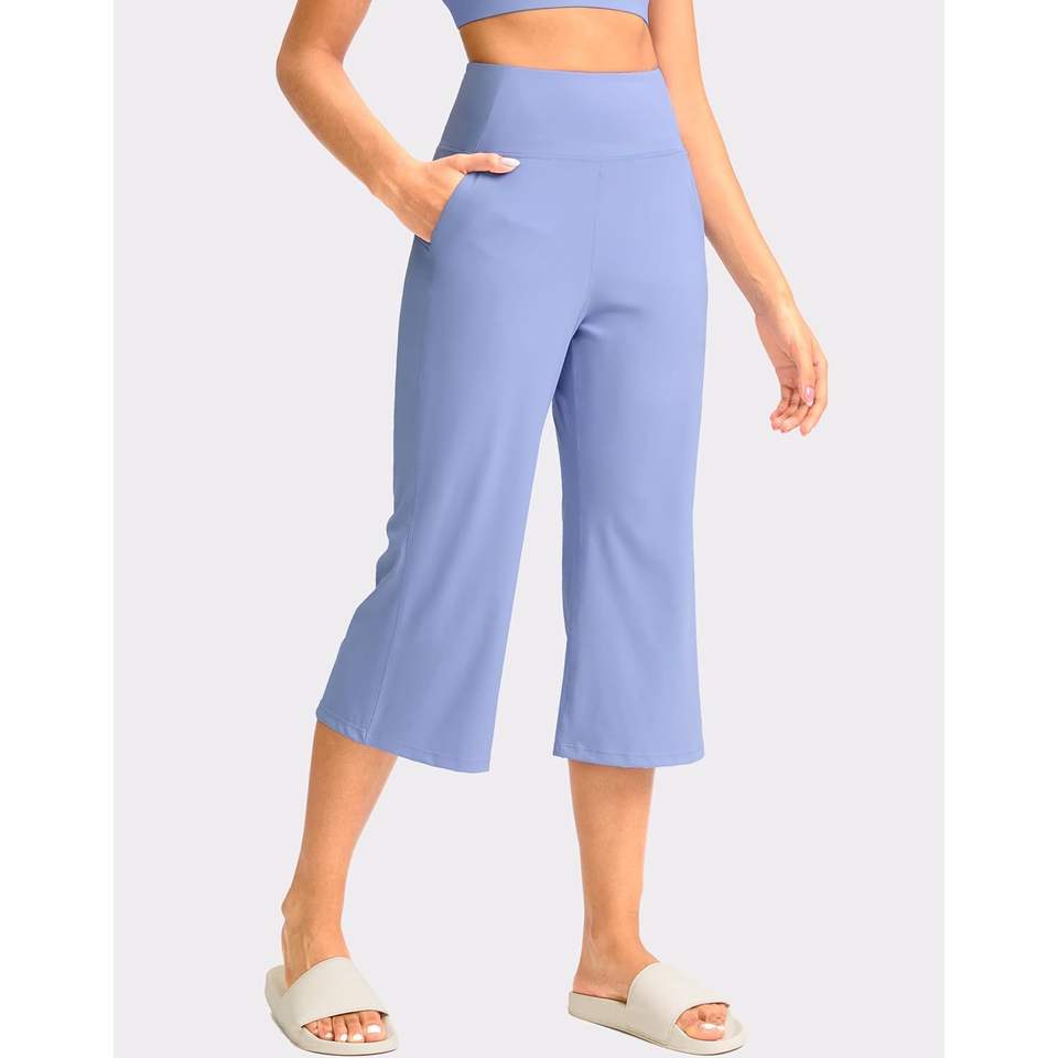 2025 Women's High Waist Wide Leg Yoga Pants with Breathable Pull Cropped Casual Athletic Capri Pants with Pockets
