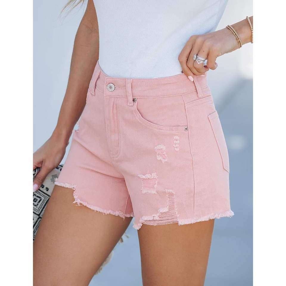 2025 Women's High Waisted Stretchy Distressed Jean Shorts Ripped Frayed Raw Hem Sexy Summer Casual Mid-Waist Shorts
