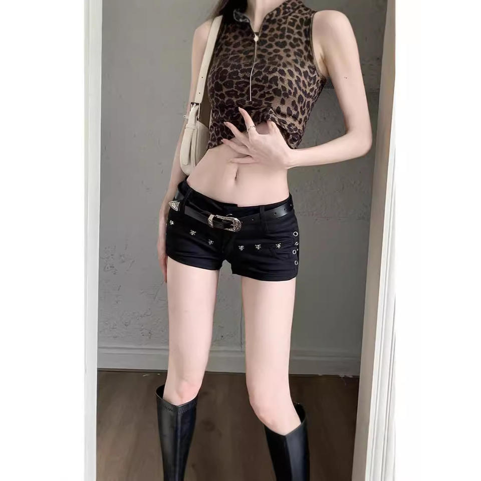 Hiromi 2025 Women's Hot Pants-Black European American Style Low-Rise Straight-Tube Denim Thin All-Match Slim Tight Hip-Wrapping