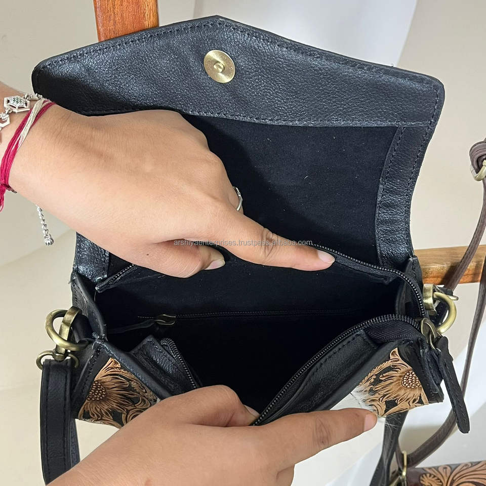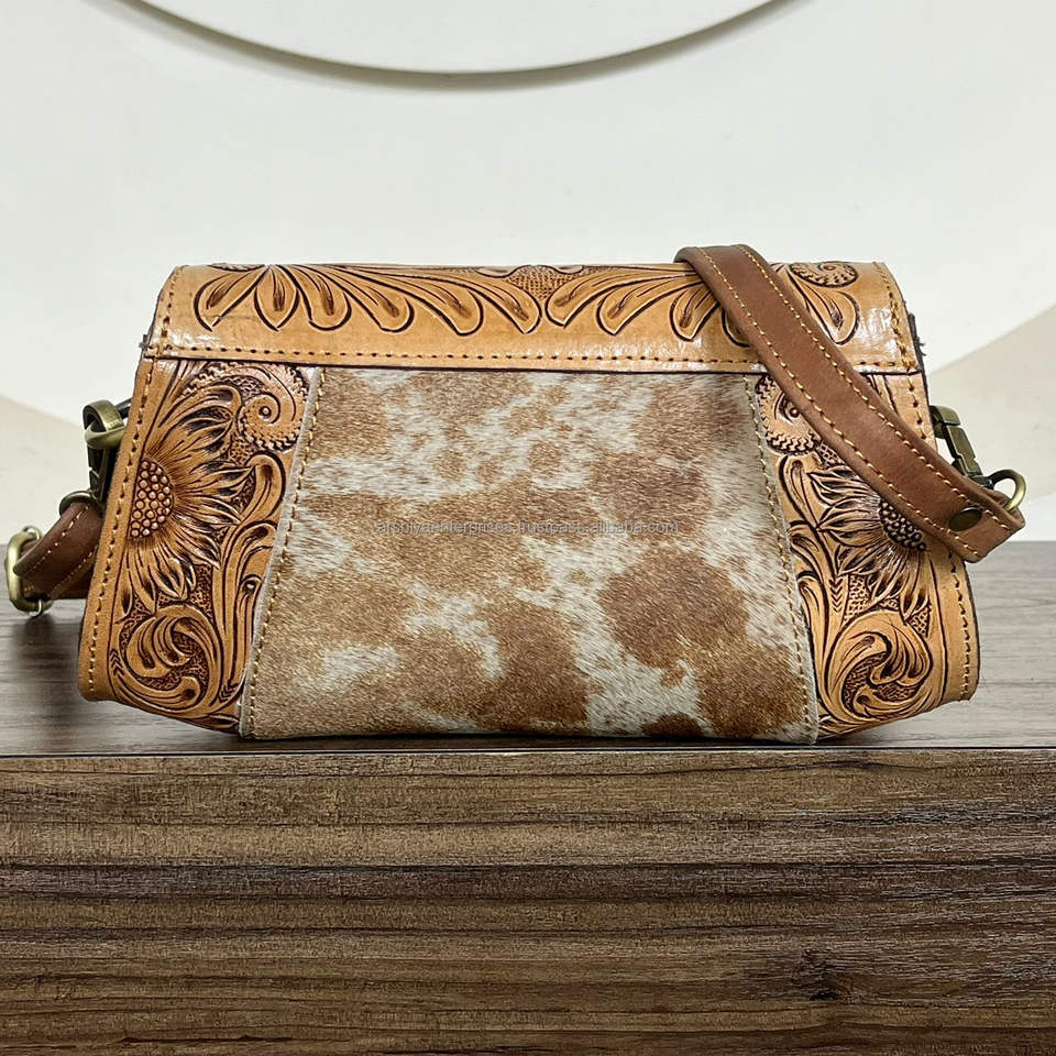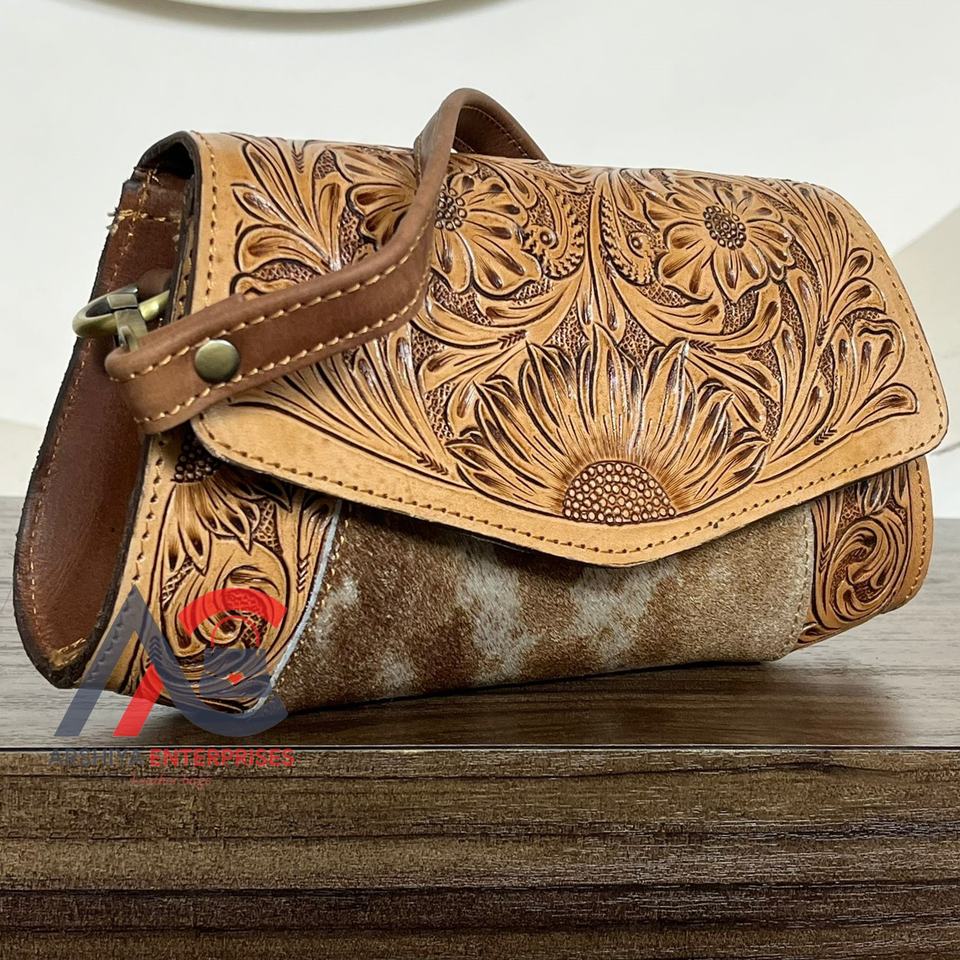 Hand Tooled Cowhide Fashionable Crossbody Bag