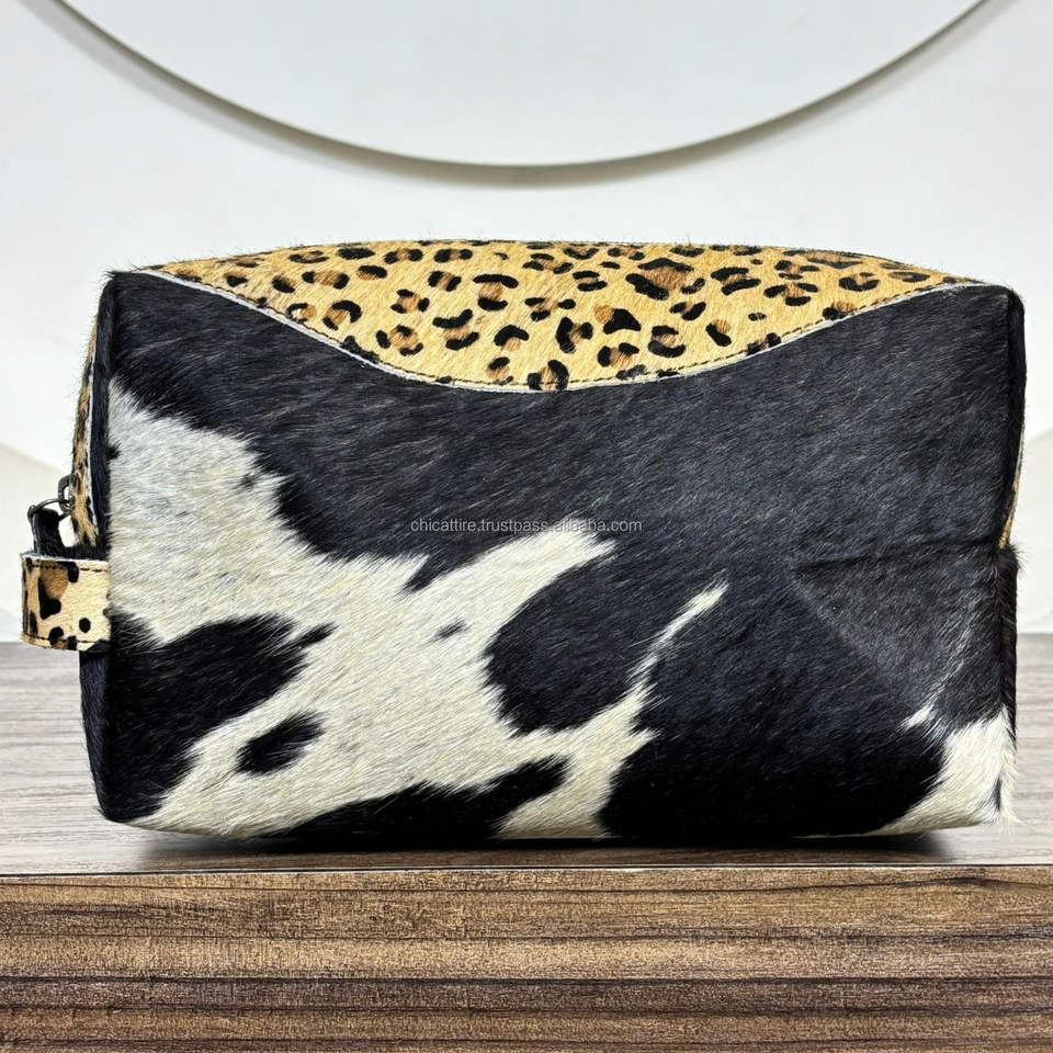 Product name:Hair On Cowhide Leather Leopard Print Toiletry Bag