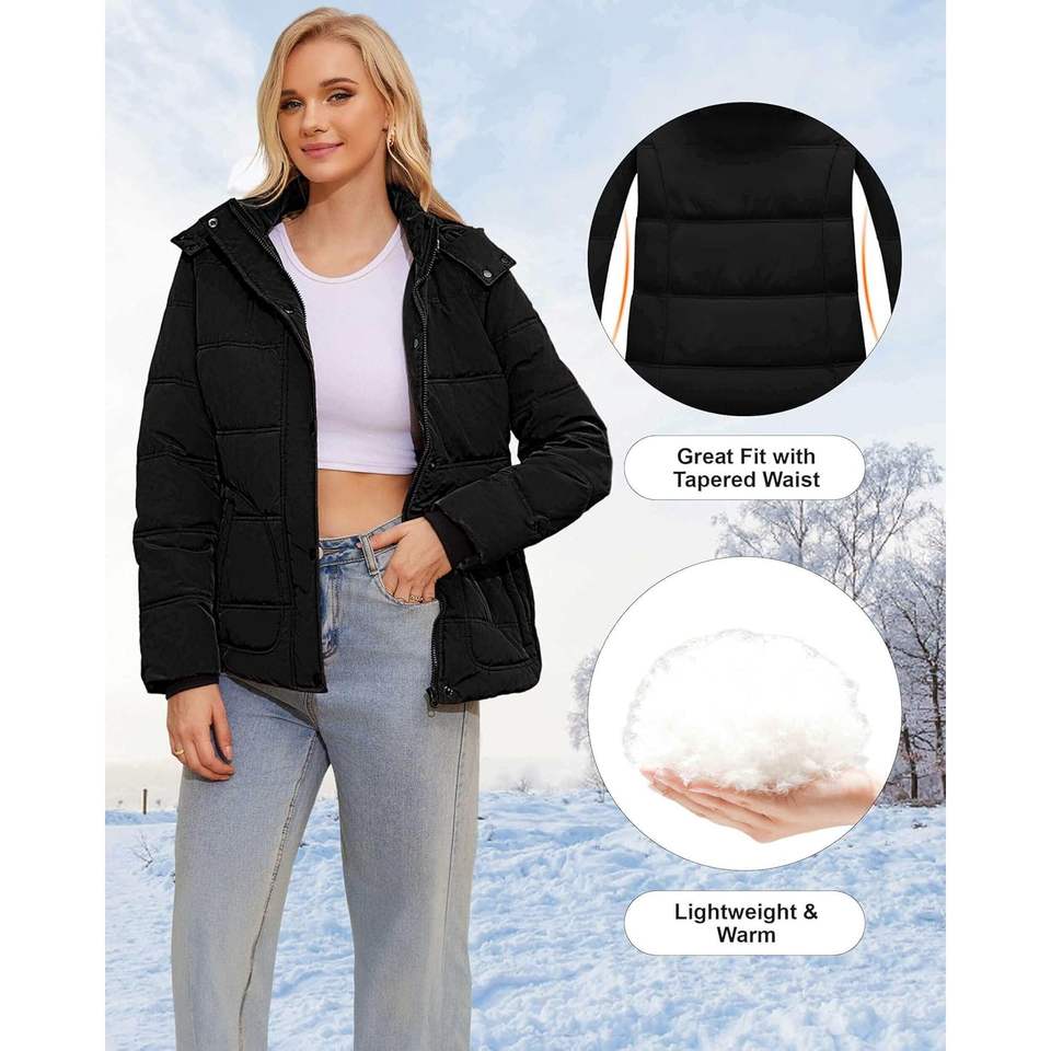 2025 Women's Lightweight Winter Coats Waterproof Quilted Jacket Removable Hood Warm Cotton-filled Puffer Jacket Winter Puffer