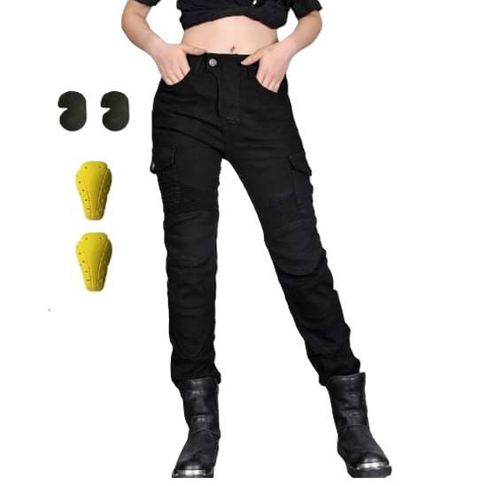 2025 Women's Moto Jeans Relaxed Denim Flare Pants with Breathable Protector Washable Casual Motorcycle Biker Pants