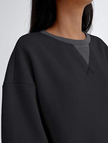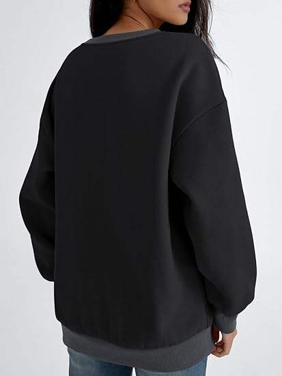 2025 Women's Oversized Fleeced Crewneck Sweatshirt Color Block New Style for Winter and Autumn