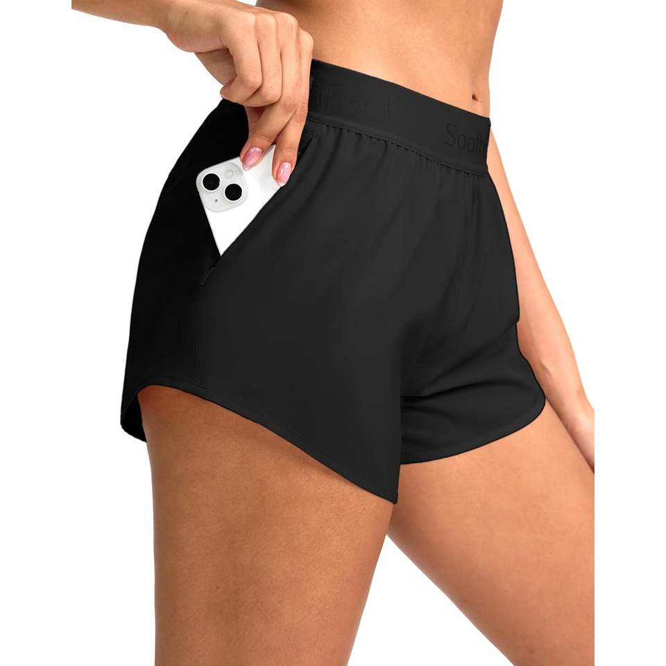 2025 Women's Quick Dry Gym Workout Shorts with 3\" Zipper Pocket Athletic Running Shorts with Liner