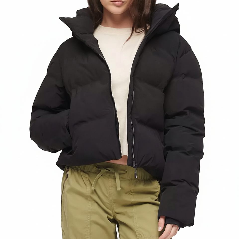 2025 Women's Solid Outdoor Jacket Foam Crop Coat Puff Ladies Down Jacket Custom Long Sleeve Winter Bomber Puffer Jacket