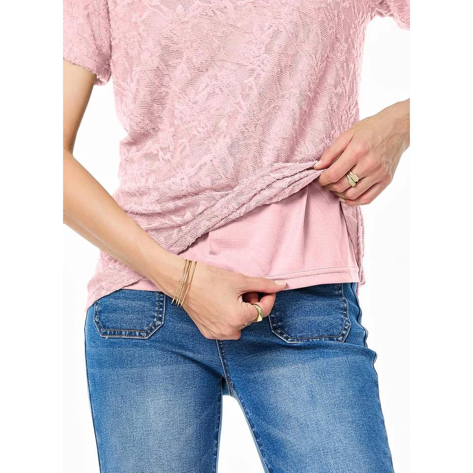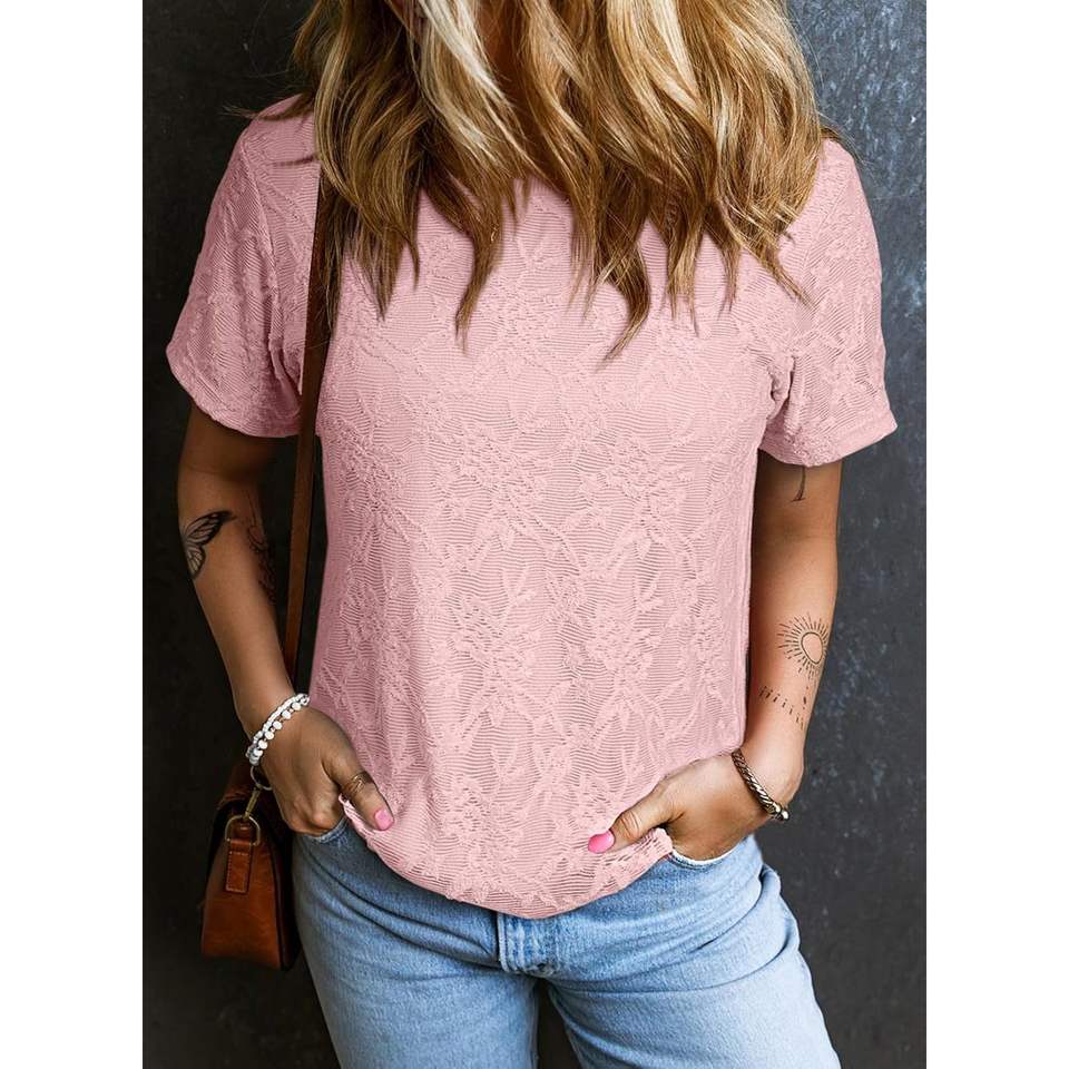 2025 Women's Summer 2025 Tops Crewneck Knit Lace Embroidery Decoration Trendy Casual T Shirts Solid Pattern Letter Thin