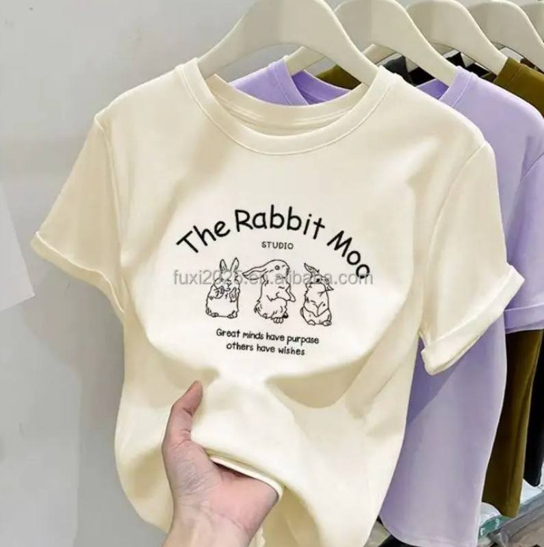 2025 Women's T-shirt New Animal Print Pearl Chain Breathable Comfortable Loose Short-sleeved Top for Spring Summer Daily Fashion
