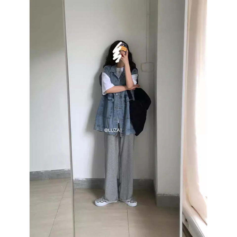 2025 Women's Trendy Versatile Street Style Denim Waistcoat Neutral & Handsome Loose Sleeveless Work Jacket Coat Spring Autumn