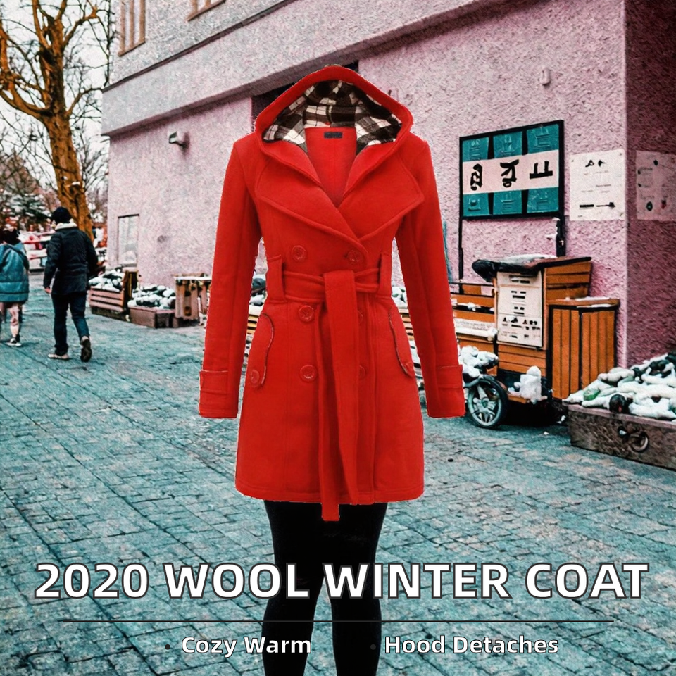 2025 Women's Winter Trench Coat Wool Jacket Fur Collar Slim Outwear Long Streetwear Style Plus Size Buttons high quality