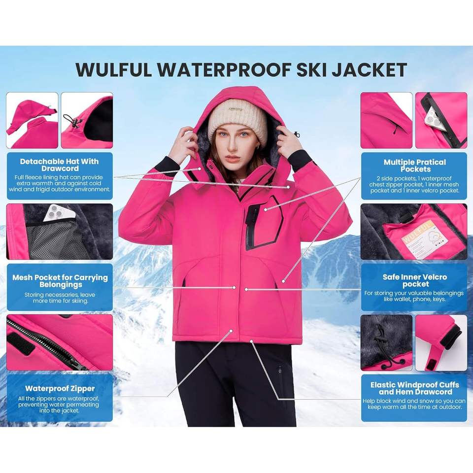 2025 Women's XL Waterproof Ski Jacket Fleece Lined Windbreaker for Winter Warm Winter Coats for Women Ski Suits