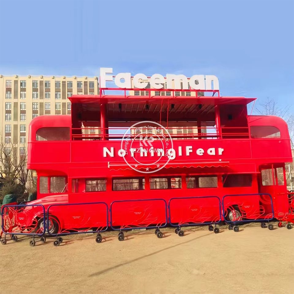2025 Wooden Mobile Foodtruck 2 Food Trailer With Deck and Upstairs Open Bar Food Cart for Sale