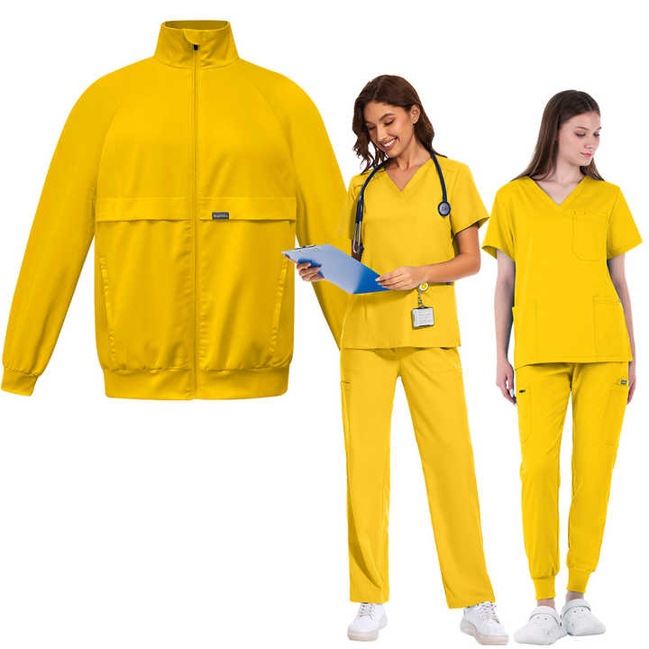 2025 Yellow 5-in-1 Jacket Straight Jogger Nursing Medical Scrubs Uniforms Set Dentist Clinic Wholesale Custom