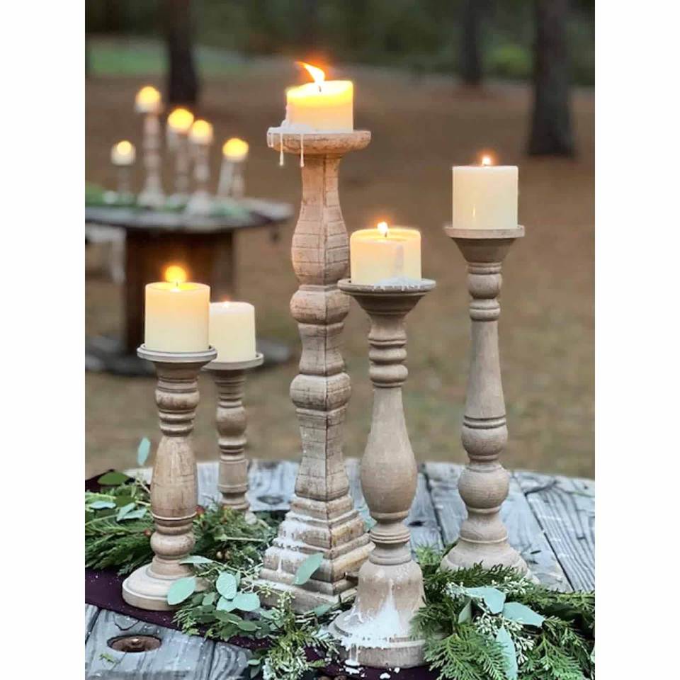 2025 best Seller Vintage Rustic Mango Wood Candle Stand for Wedding Floor Standing Decorations Unique Candle Stands